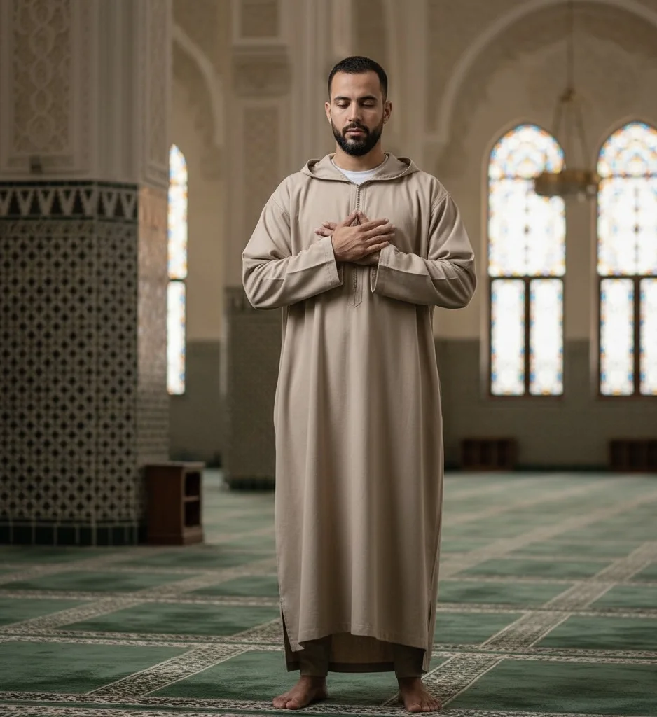 Nous avons sélectionné des tissus d'une qualité exceptionnelle pour garantir une sensation de fraîcheur et de bien-être, même après de longues heures de prière. Sa coupe ample et décontractée est pensée pour ne pas entraver vos mouvements, vous permettant de vous concentrer pleinement sur votre adoration.